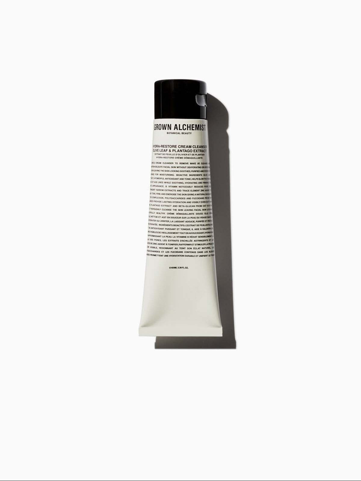 Grown Alchemist Hydra Restore Cream Cleanser biedt een luxueuze reiniging voor de gevoelige huid. Deze zachte crème, verrijkt met olijfblad- en plantago-extract, verwijdert moeiteloos make-up en onzuiverheden zonder de huid te irriteren. Je huid voelt direct gevoed, gehydrateerd en zijdezacht aan.